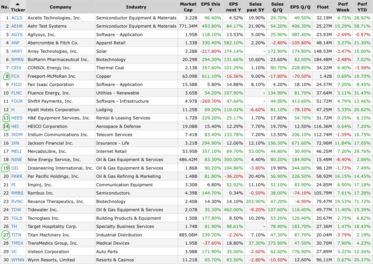現在の保有銘柄は、TITN、HEES、FCX、HEI、OIIです。