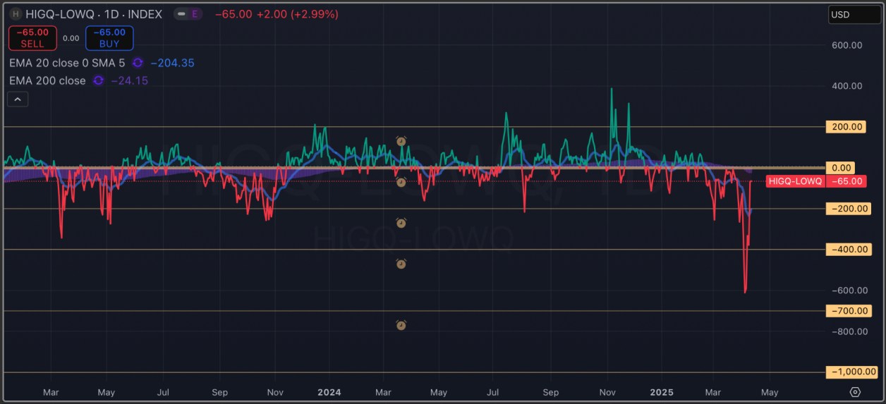 ナスダックの高値-安値銘柄数は先週に大きく回復し、-65まで戻って来ています。トレンドが転換する兆候が見られます。